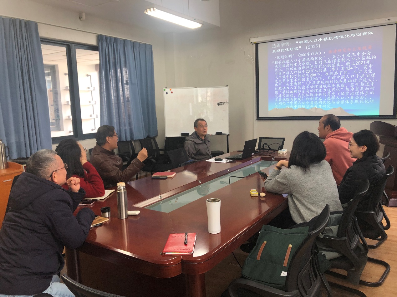 12月5日上午,第75期鏡月工作坊學術(shù)沙龍在學院334室舉行。本次學術(shù)沙龍邀請我院朱新山教授為學院老師和研究生分享申報國家社科基金項目的經(jīng)驗。陳向義教授主持本次鏡月工作坊學術(shù)沙龍。朱新山教授主要從事政治理論、基層治理、中國特色社會主義理論及海權(quán)戰(zhàn)略之研究。2025年,朱新山教授申報的“中國人口小縣機構(gòu)優(yōu)化與治理體系現(xiàn)代化研究”獲國家社科基金項目立項。